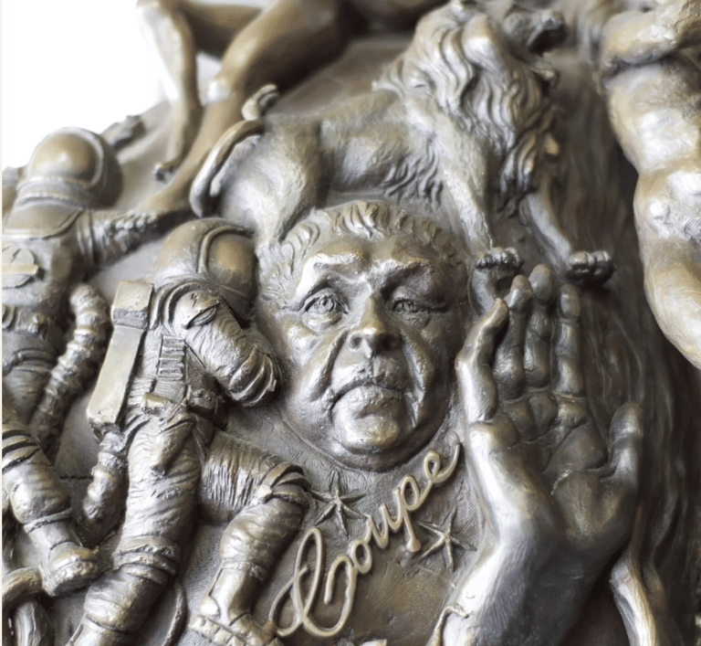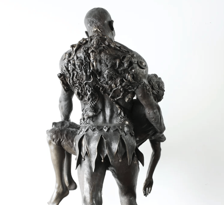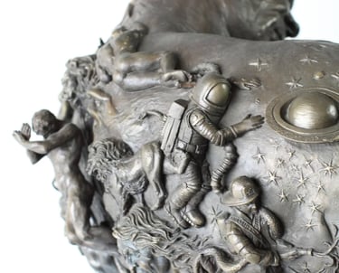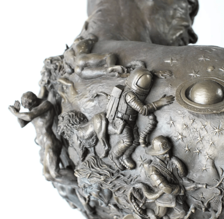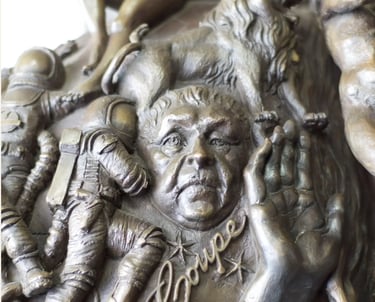 As seen in Episode 1 of "I'm Curious About George", the sculpture "Father Electrico", by sculptor Christopher Slatoff (Christopherslatoff.com)